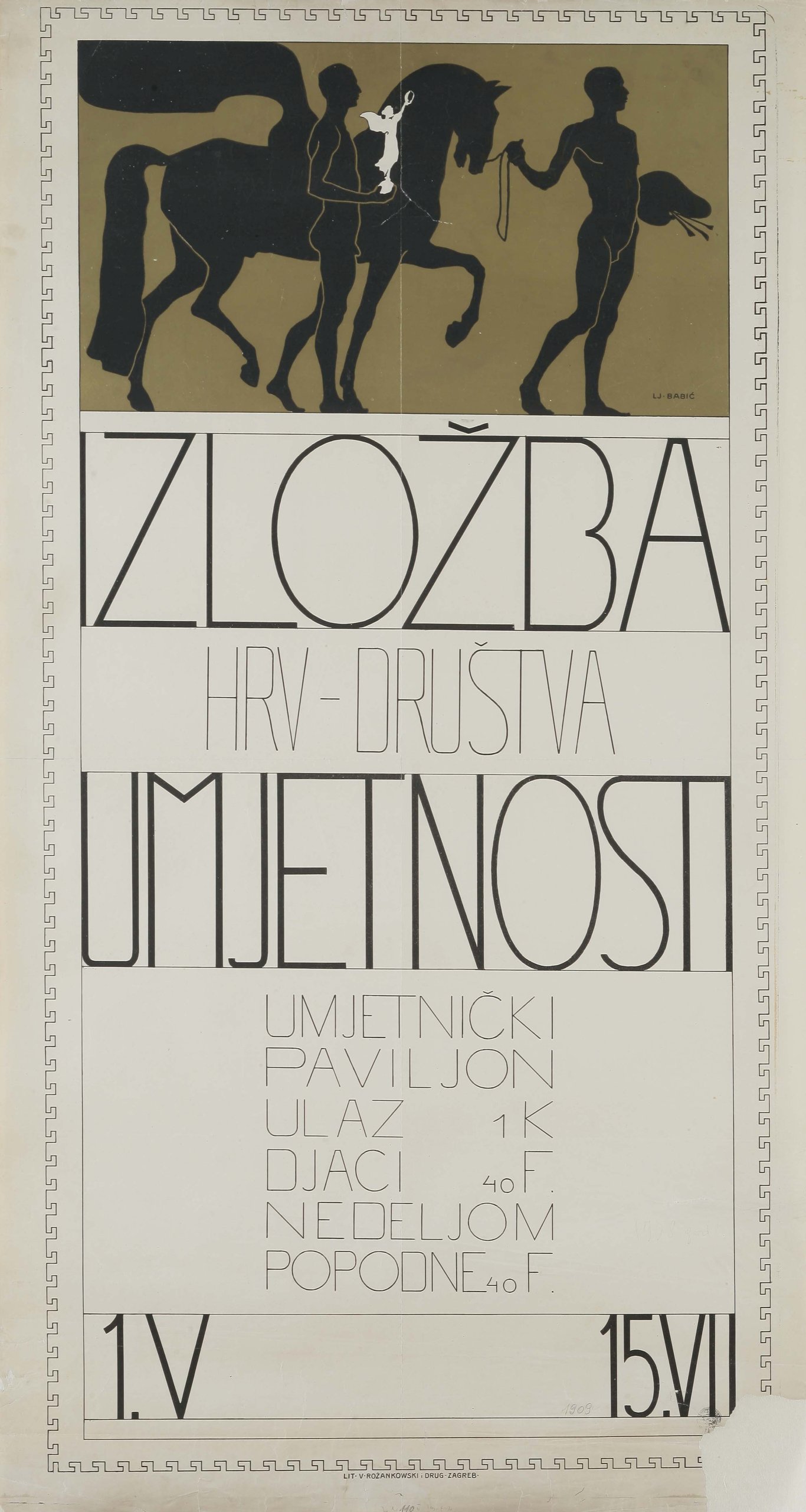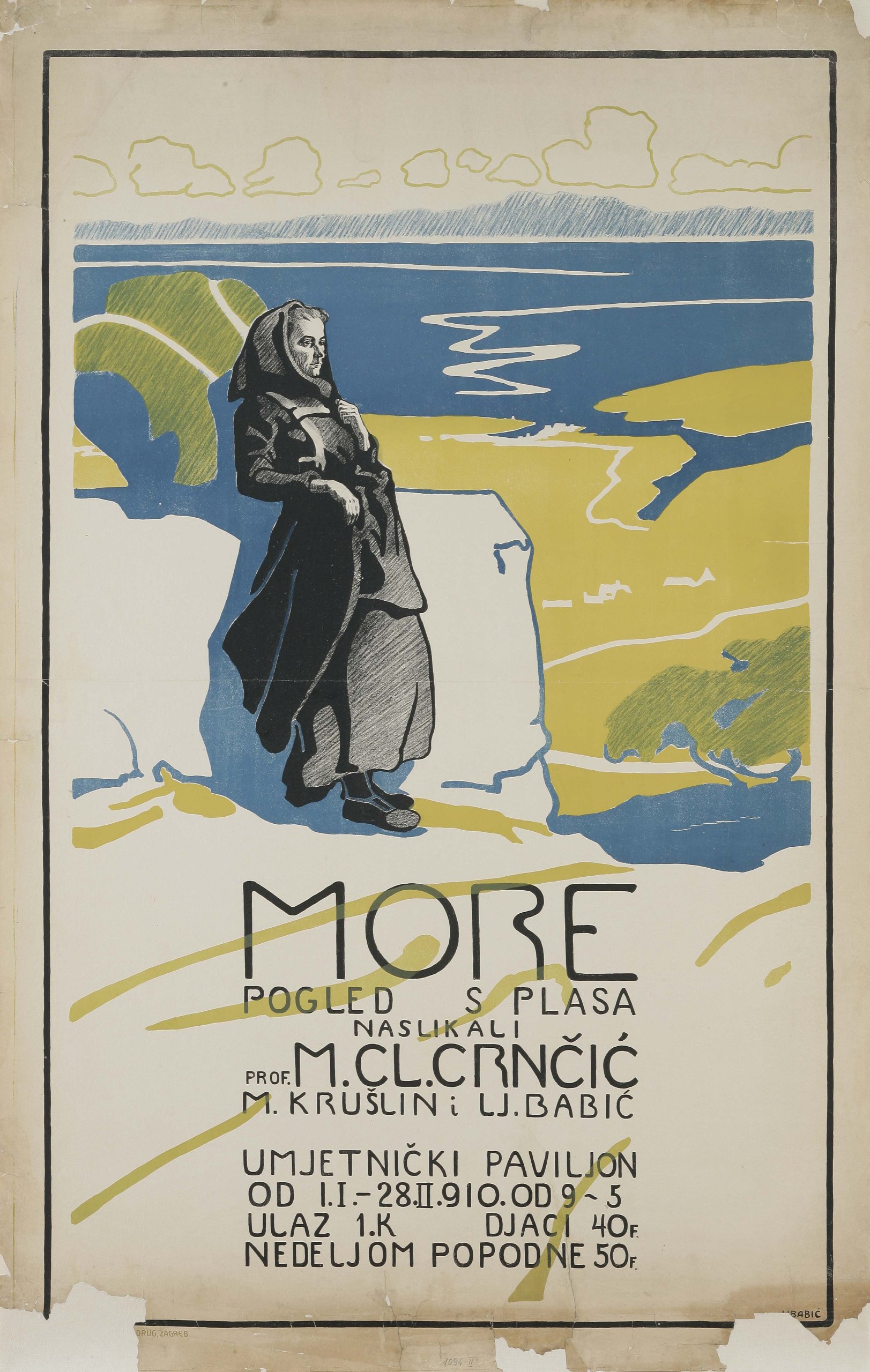U Zagrebu se u Umjetničkom paviljonu prije početka ratnih stradanja u travnju 1914. godine, u organizaciji Hrvatskog društva umjetnosti, održala važna međunarodna izložba plakata. Na njoj su između internacionalnih predstavnika iz Francuske, Engleske, Njemačke, Češke, Austrije i drugih zemalja bili zastupljeni i domaći plakati, a predstavljeni su i natječajni radovi za plakat Zagrebačkog zbora. Radilo se o prvome takvom natječaju na našim prostorima, a među prijavljenim radovima nalazio se i prijedlog plakata Ljube Babića koji je osvojio drugu nagradu. Tadašnja kritika loše je ocijenila domaću plakatnu produkciju, osim nekih časnih iznimaka, navodeći kako je plakat „danas jedno umjetničko djelo“ [2]. U vrijeme trajanja izložbe održavala su se i predavanja o izloženim radovima koja je držao predsjednik Hrvatskog društva umjetnosti prof. dr. Iso Kršnjavi. Na toj važnoj međunarodnoj manifestaciji na hrvatskom odjelu izložbe bio je predstavljen i Babićev plakat More, pogled s Plasa, što pokazuje kako je njegovo plakatno oblikovanje bilo zarana zamijećeno, a njegov uradak odabran kao jedan od nacionalnih predstavnika izložen sučelice reprezentativnim međunarodnim ostvarenjima.