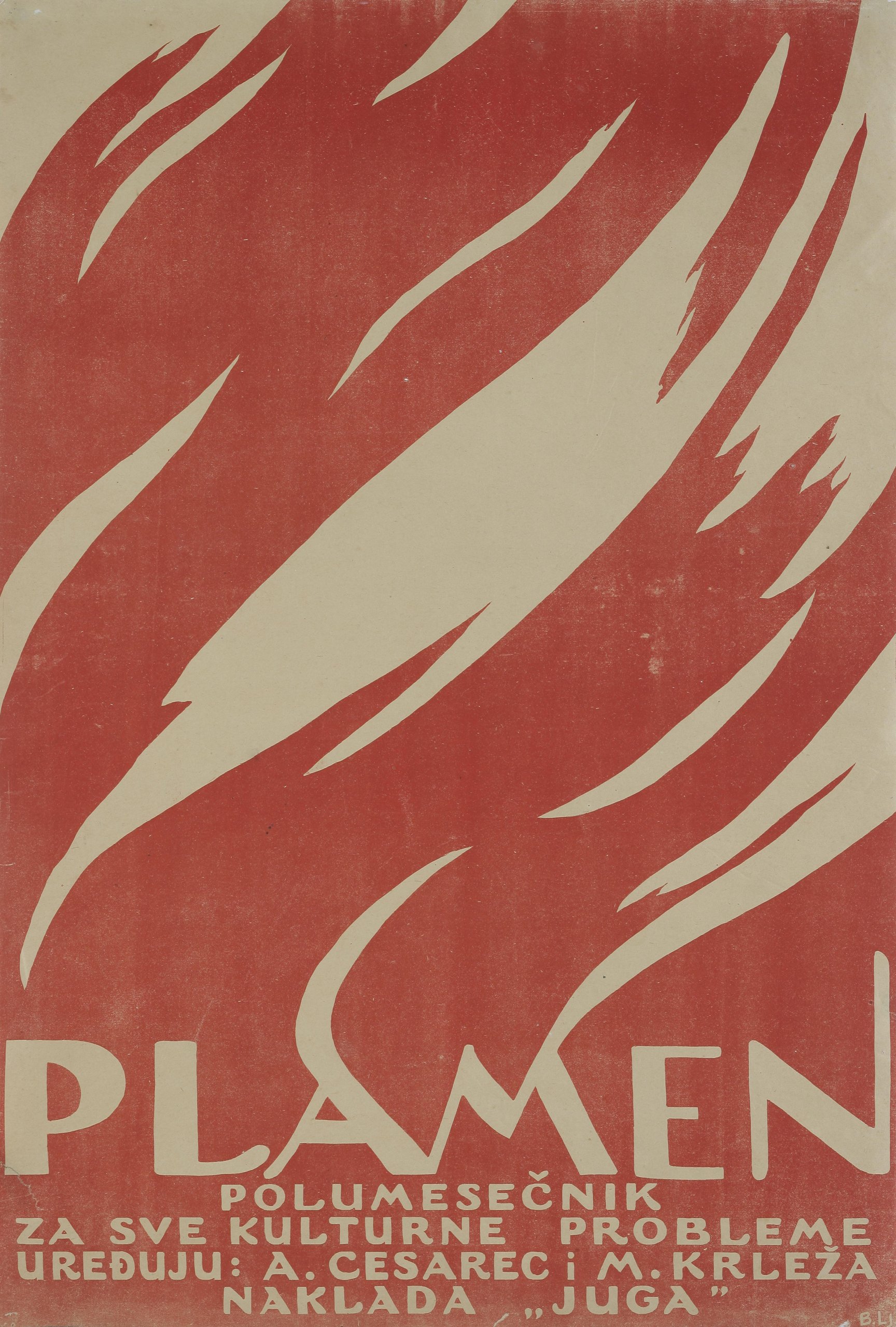 Godine 1914. Ljubo Babić upoznaje intelektualca i književnika Miroslava Krležu, s kojim će ga u daljnjim godinama povezivati međusobna suradnja i prijateljstvo. Babić je 1917. likovno opremio i financijski pomogao izdati prvu Krležinu knjigu, lirsku poemu Pan. Njihova daljnja plodonosna suradnja bila je iznimno važna kako u razvoju književnosti te likovne i scenske umjetnosti (Babić je scenski opremio brojne Krležine drame), tako i kulture u cjelini na našim prostorima. Česte polemičke rasprave s Krležom te njihovi međusobni intelektualni utjecaji imat će važnu ulogu u Babićevu stvaralaštvu. Prema riječima Ivanke Reberski: „Godine najintenzivnije suradnje s Krležom bile su mu ujedno i najplodonosnije, kad se neizbrisivo ubilježio u našu kulturnu i umjetničku povijest, ne samo likovnu već podjednako, ako ne i značajnije u povijest hrvatskog kazališta s avangardno modernim scenografskim rješenjima, ali i podjednako suvremenim grafičkim dizajnom, ilustracijama i opremom knjiga.“ [3] Babić je opremio više Krležinih knjiga, a između dva svjetska rata bio je angažiran i za likovno oblikovanje četiri književna časopisa koja je pokrenuo i uređivao Krleža – Plamen (1919.), Književna republika (1923.), Danas, (1934.) i Pečat (1940.). Antologijsko značenje imaju plakati izrađeni za časopise Plamen (kat. 7) i Književna republika (kat. 8), koji se smatraju vrhuncem Babićeve ekspresionističke poetike. Njihova je odlika jednostavnost i čistoća u izvedbi te moćna simbolika, primjerice rasplamsanog plamena koji se prenosi i na naslov časopisa ili slobodnog leta crvenih ptica promatranog iza crnih rešetaka u kompoziciji za Književnu republiku, kojima Babić jasno upućuje na politički konotirani sadržaj časopisa.